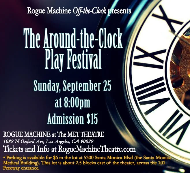 The Rogue Machine is a company I'm proud to be a part of - they're always thinking of fun and exciting ways to create new work in L.A, and Around the Clock is no exception! Come check out what a bunch of very tired writers, directors, actors and producers can dream up in 24 hours.